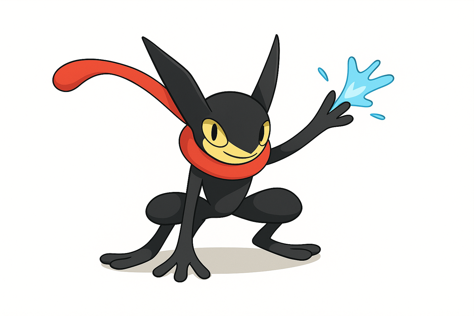 - 色違いのゲッコウガは全身が黒く舌のマフラーが赤いクールな配色