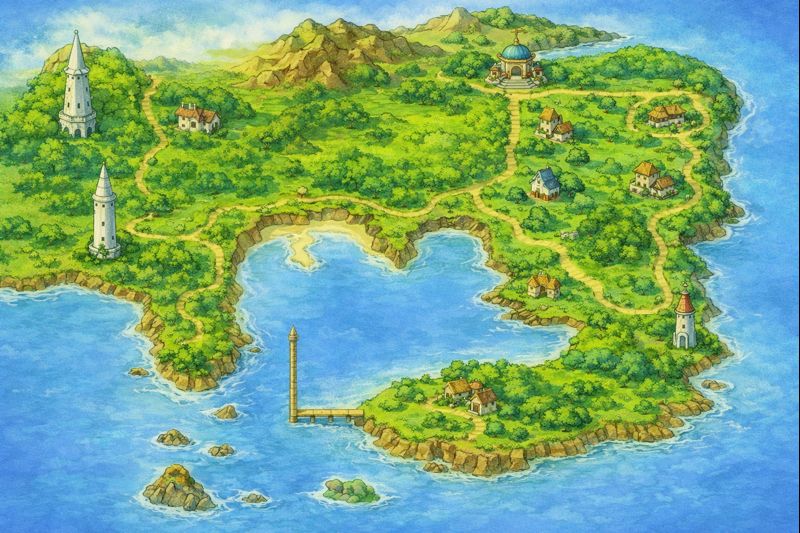 ニンテンドーDSで発売されたアクションゲーム『ポケモンレンジャー』の舞台である「フィオレ地方」は、地形や地名から岡山県、兵庫県西部、香川県(小豆島)などがモデルであると言われています。例えば、「フォルシティ」の時計台が赤穂城を連想させる点や、小豆島に相当する位置に島がある点などが根拠とされています。瀬戸内海の穏やかな気候や島々の風景が、ゲーム内の世界観にも反映されています。