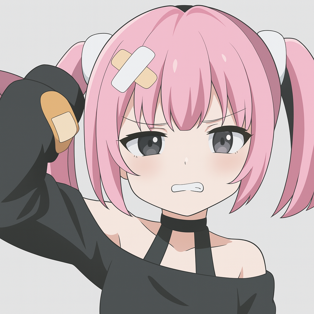 • 外見はピンクのツインテールと絆創膏で強い印象を与える