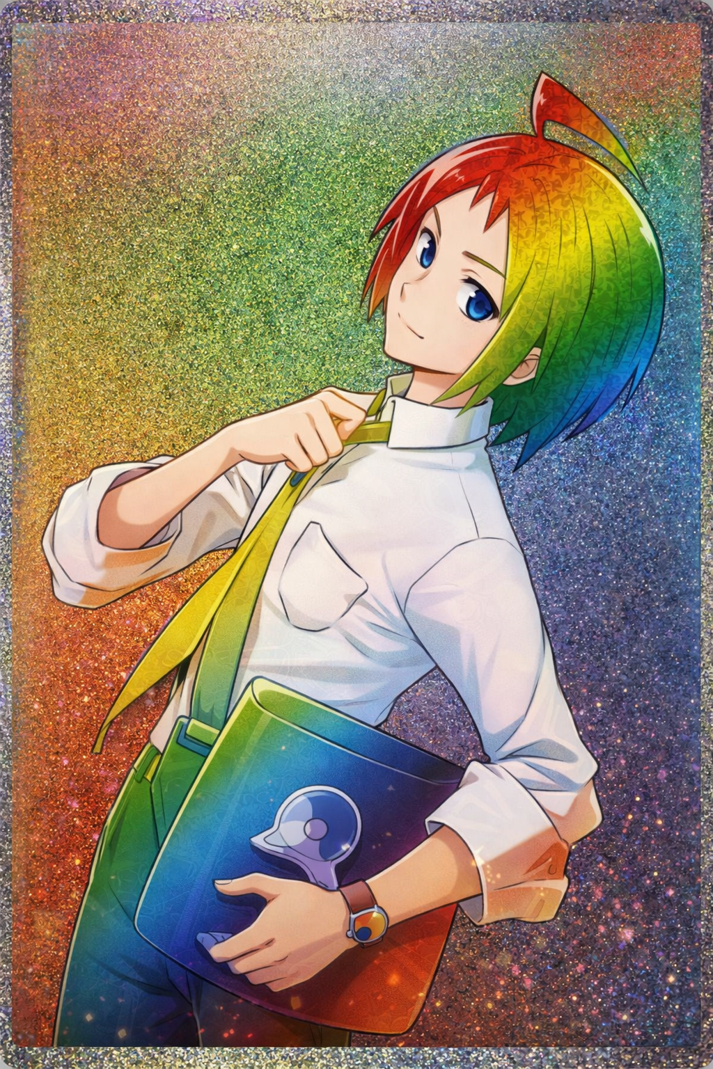 また、BW2の彼は青いジャケットを脱ぎ捨て、ワイシャツに赤いネクタイを締めた、いかにも「教師」らしいフォーマルなスタイルへと変化しています。ネクタイを締めるという行為は、社会的な責任を負う立場になったこと、つまり「大人の階段を登ったこと」の明確なサインです。彼はジムリーダーとしてヒオウギシティの防衛を担い、同時にトレーナーズスクールの先生として子供たちを導くという、二つの大きな社会的役割を与えられました。かつて自分のためだけにバトルの強さを追い求めていた少年が、今度は社会に貢献するためにその力を使おうとしているのです。ネクタイの「赤」は、彼の中に秘められた熱い情熱や、後進を育てるという強い意志の表れなのかもしれません。私たちも社会人としてネクタイを締めるとき、少しだけ気が引き締まる思いがしますが、彼もまた、毎朝鏡の前でネクタイを締めながら、自分に課せられた責任の重さを噛み締めていたのだと思います。