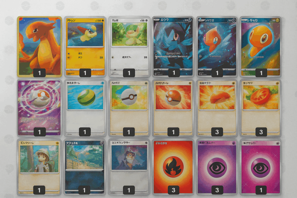費用対効果を意識するなら、まずは必須となるドラパルトEXラインとドロンチ、ワザマシン エヴォリューション、基本エネルギーを確保することが出発点です。その後、リーリエの決心や入れ替え札といった安定化パーツを追加し、さらに競技用のメタカードやスタジアムを段階的に取り入れる流れが理想的です。