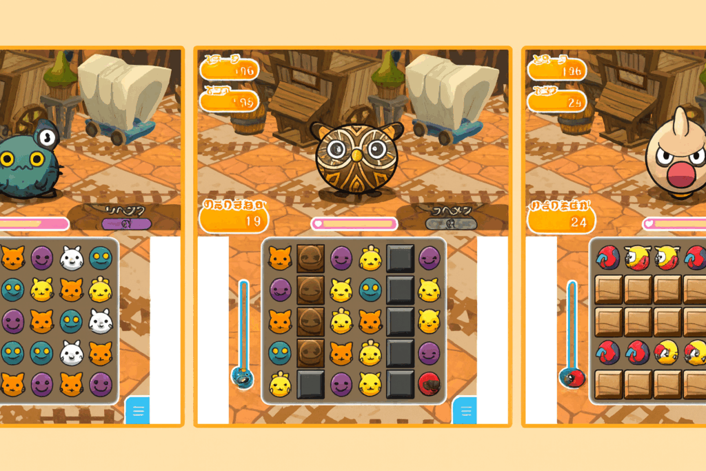 | ポイント | Y字消去でバリアを一掃 | 高火力スキルでHPを削る | 初期配置のバリアに有効 | オジャマのブロックに対応 |