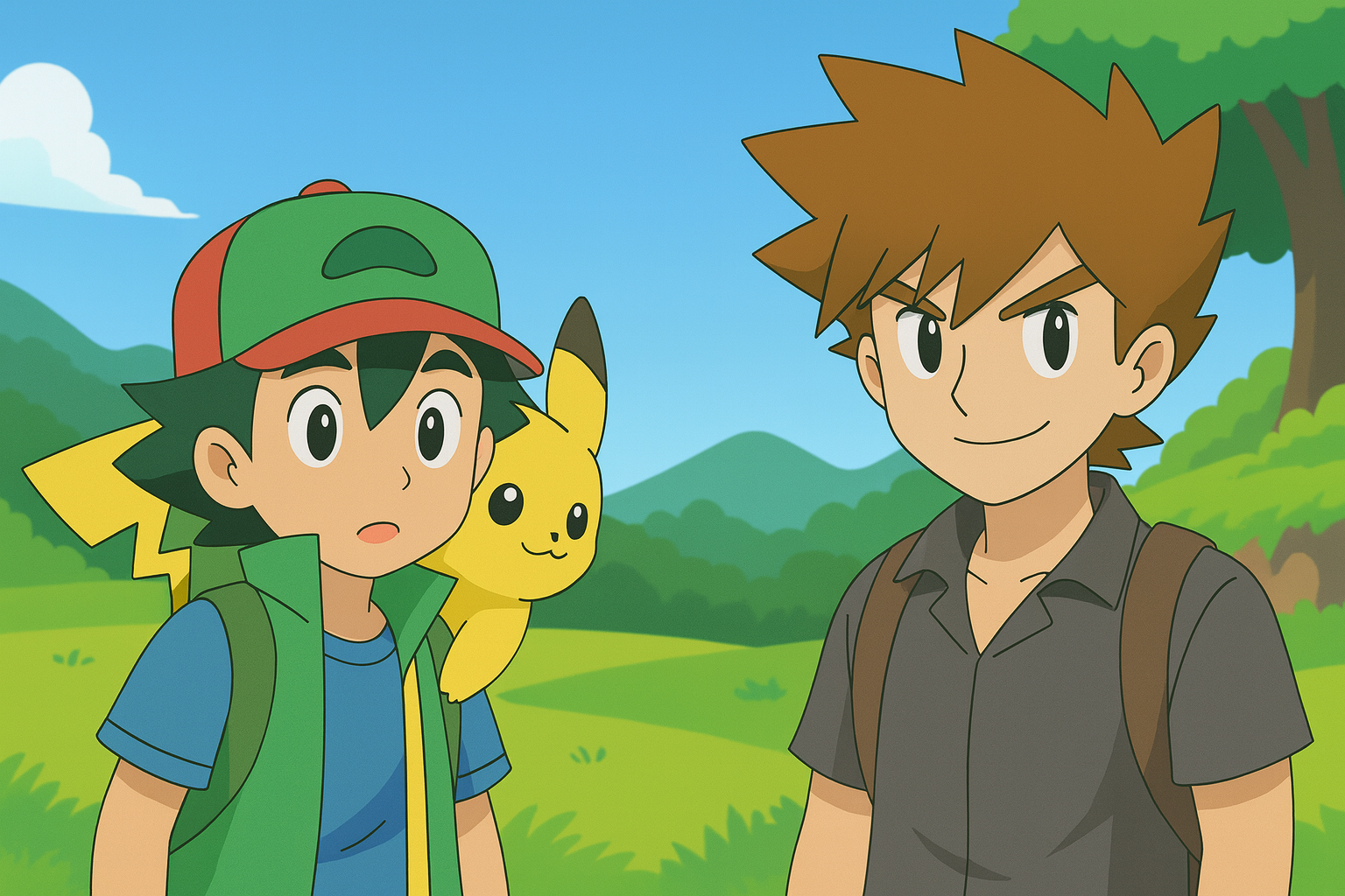 サトシのライバルとして最も代表的な存在は、間違いなくシゲルです。彼はサトシと同じマサラタウン出身で、生涯にわたる「永遠のライバル」として描かれました。ゲーム版『ポケットモンスター 赤・緑』の主人公レッドのライバルがグリーンであることを考えると、グリーンをモデルにしたシゲルがアニメにおけるサトシのライバルとして位置づけられたのは非常に自然なことと言えるでしょう。